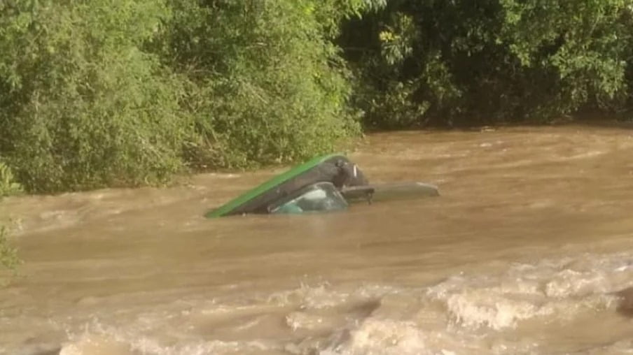 Vítima estava dentro do carro que foi arrastado pela correnteza.